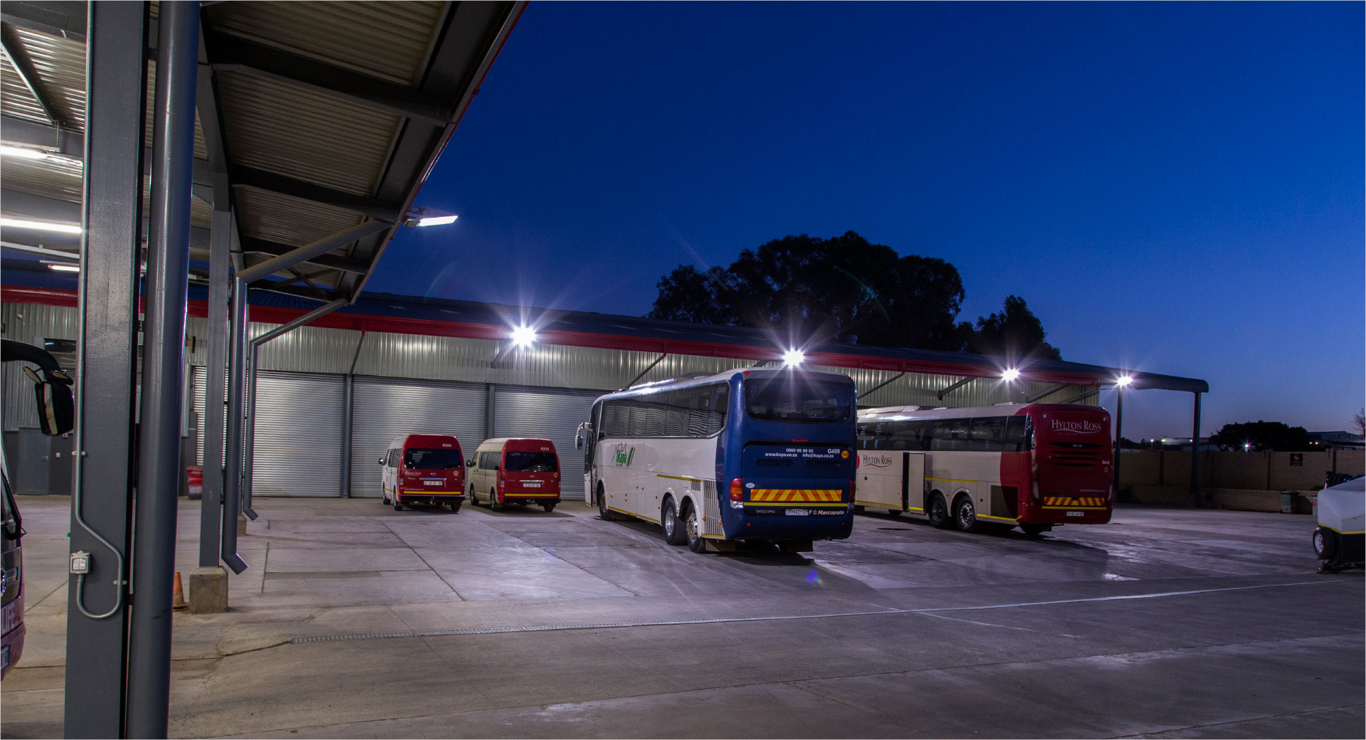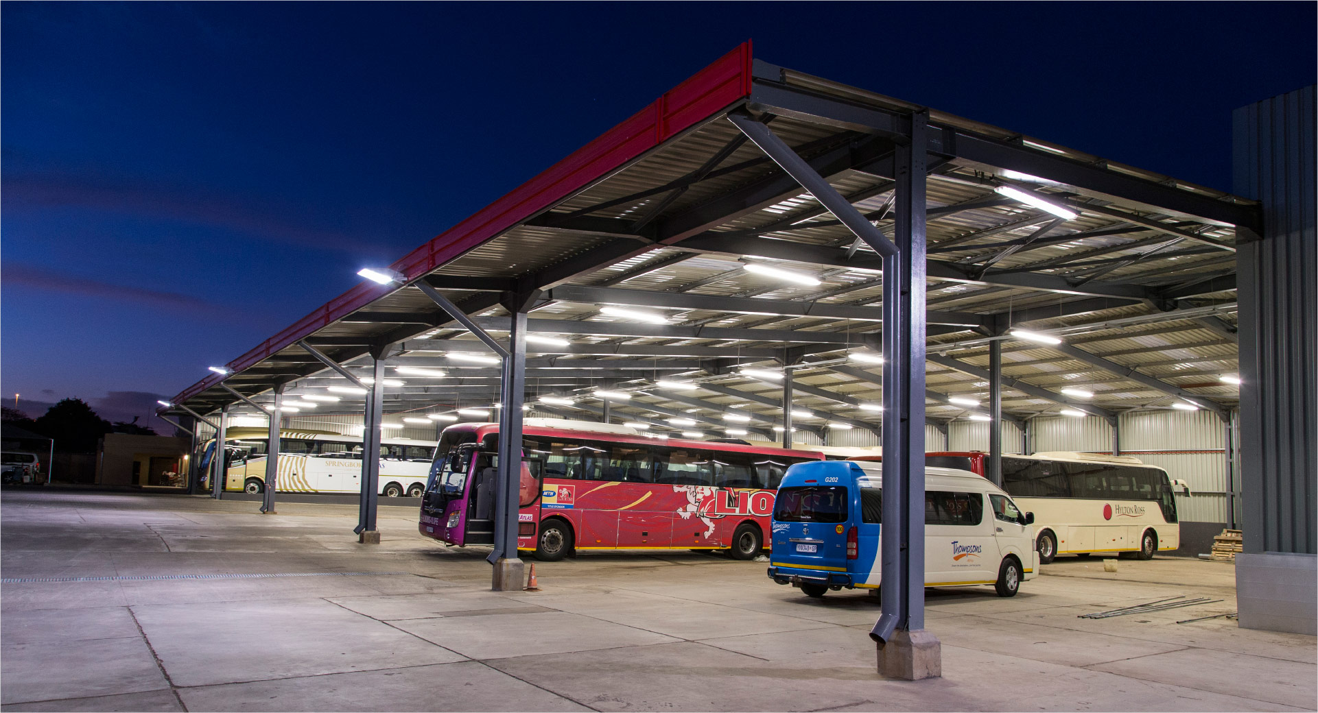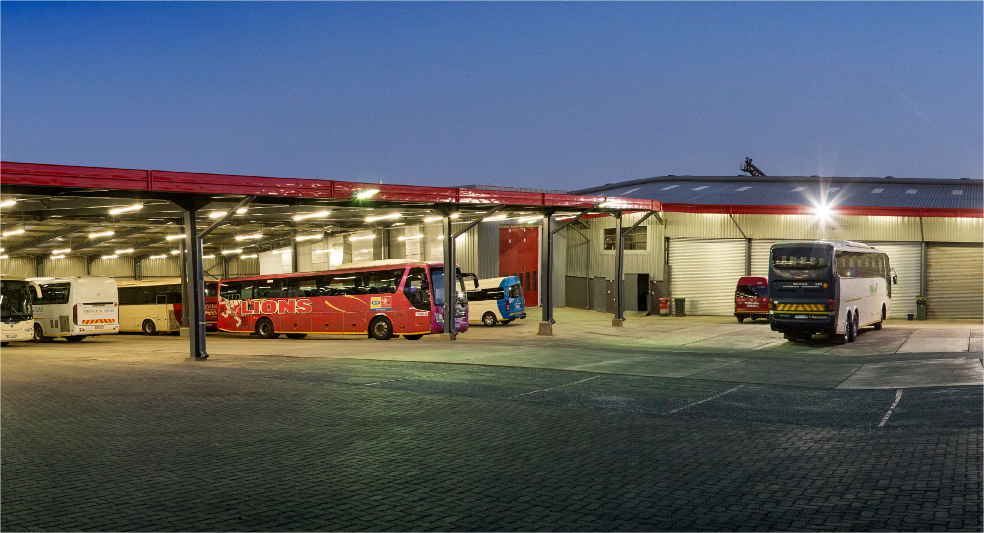 The project also includes construction of new site utilities to include a 1200m2 workshop facility comprising 3 separate service pits, new stores, engine bays and oil storage facility; a 1600m2 luxury coach parking facility; a 600m2 standard coach parking facility and a 250m2 Quantum coach parking facility.
