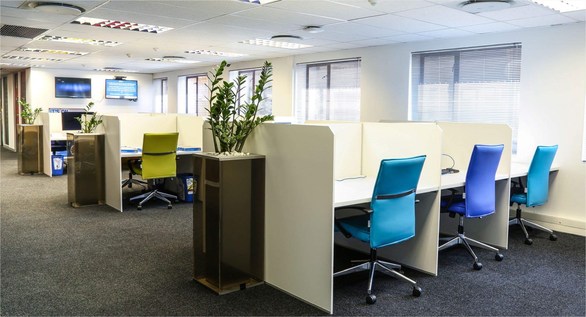 The Call Centre Headquarters for Multichoice occupies two adjacent four-storey buildings of approximately 8000m2. The existing buildings were completely stripped out and fitted-out to provide, open-concept work areas, touch-down pods, communal kitchens, meeting rooms with integrated AV systems, a cafeteria and kitchen and 3500m2 call centre to accommodate 1500 people. The end result was an enhanced architectural space with collaborative working areas.